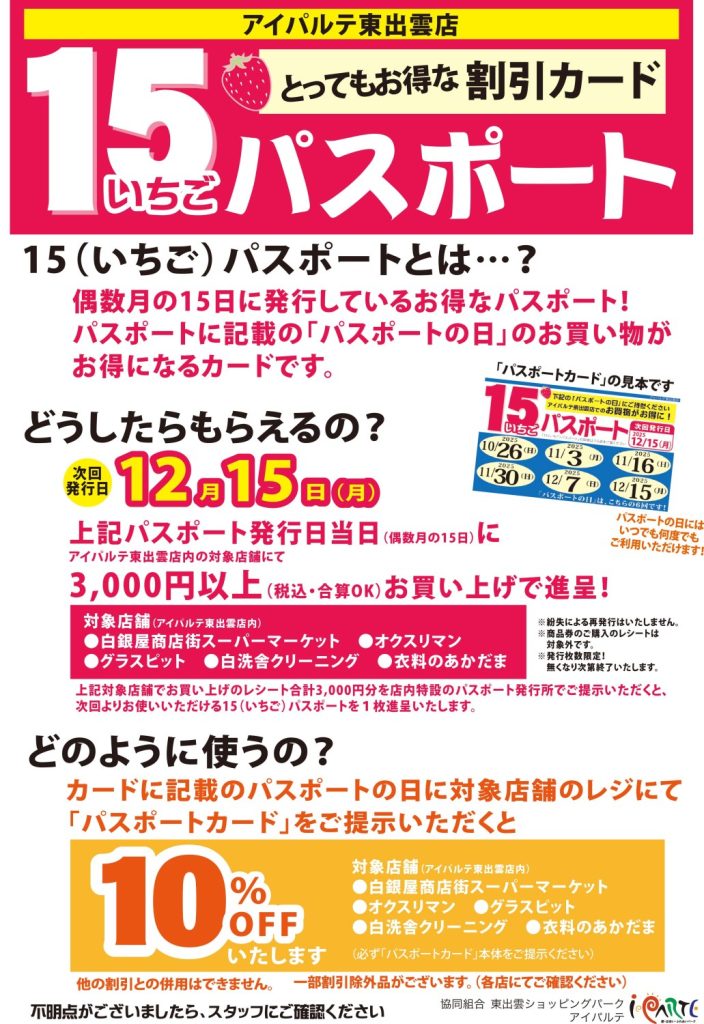 特定日にアイパルテで買い物するだけで、特定日に割引が受けられるパスポートです。