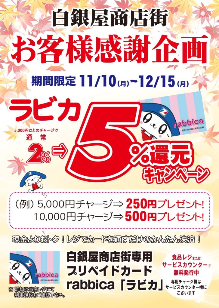白銀屋商店街で使えるプリペイドカード「ラビカ」チャージ式なので安心!レジでの支払いが簡単!