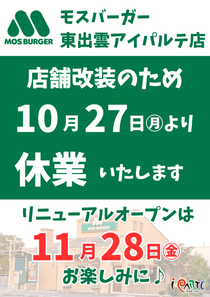 モスバーガー 改装のお知らせ