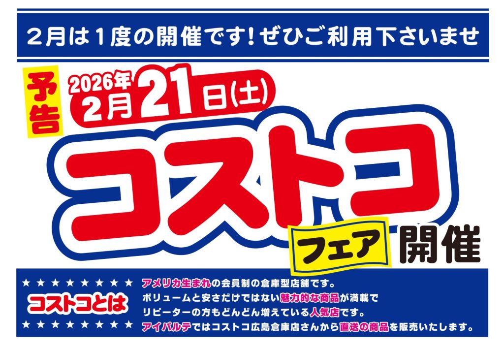 次回コストコフェアは、2月21日(土)の予定♪